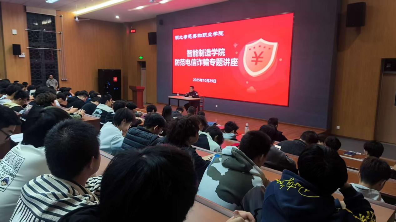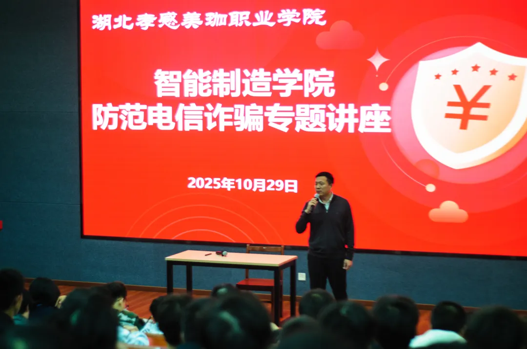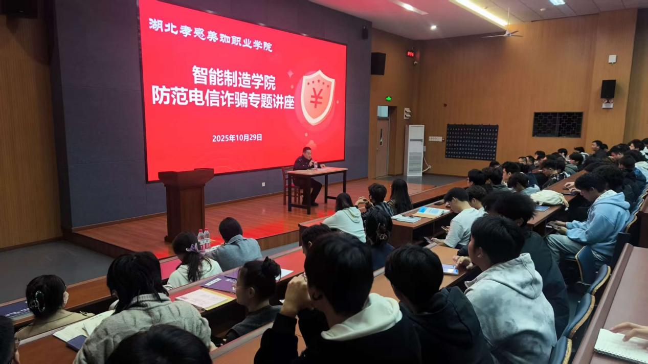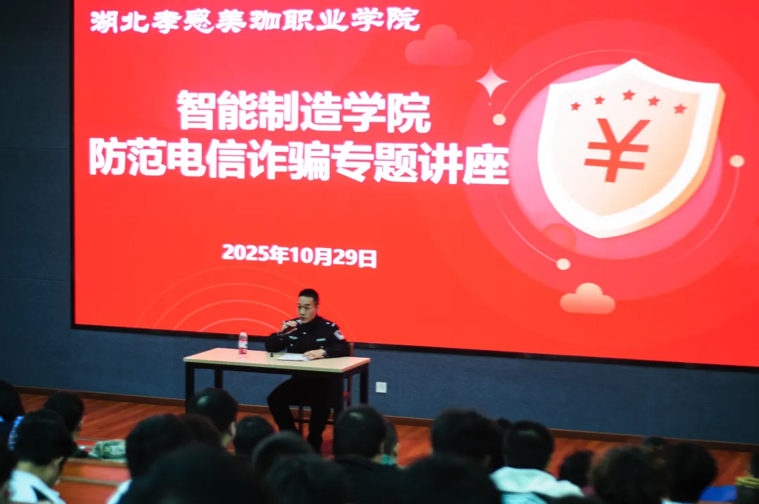 为进一步提升大学生的网络安全意识和防诈骗能力,2025年10月29日下午18:30,孝感市闵集派出所杨警官走进我院,开展了一场主题为“防范网络诈骗,守护青春财产安全”的专题讲座。