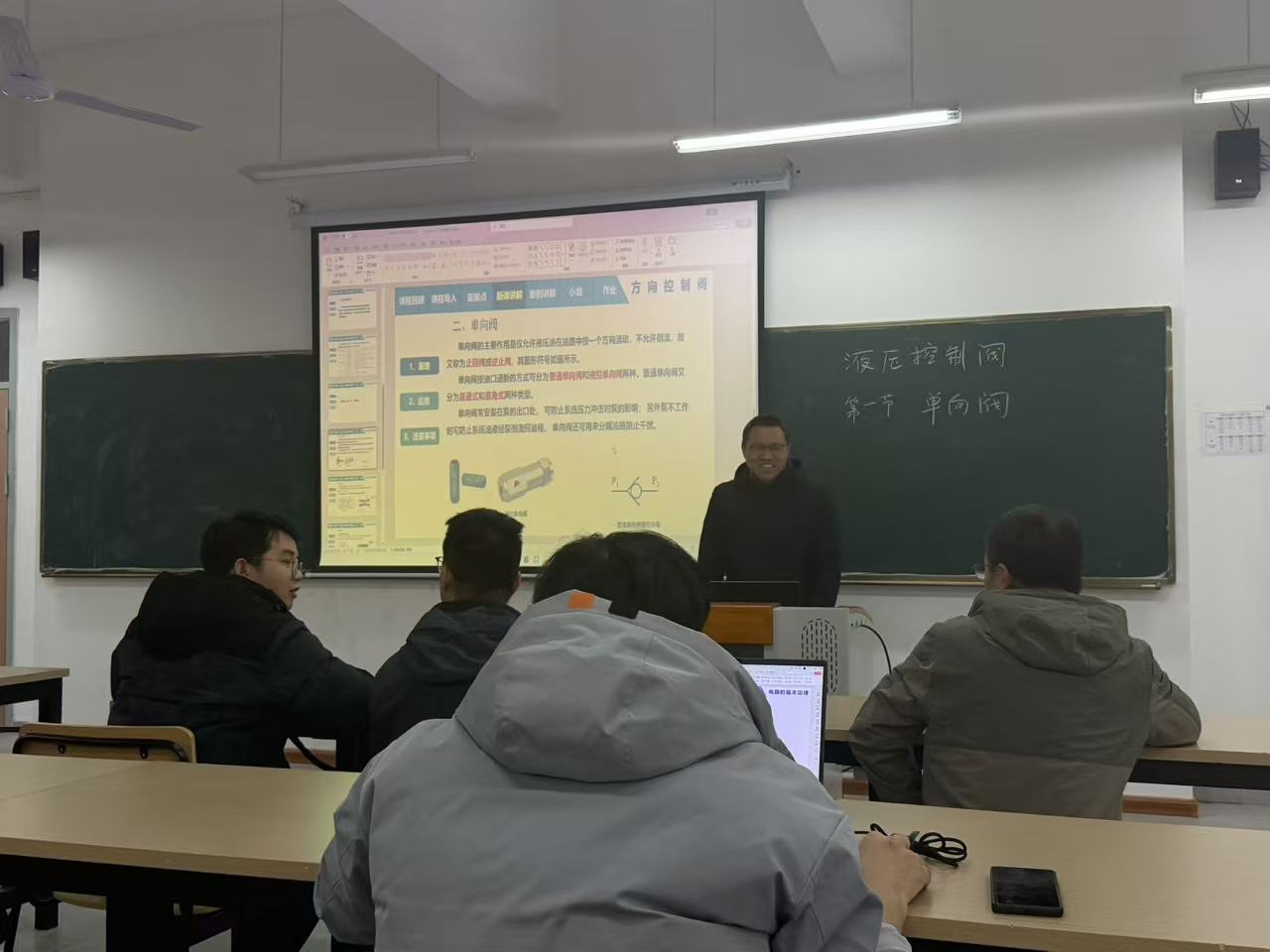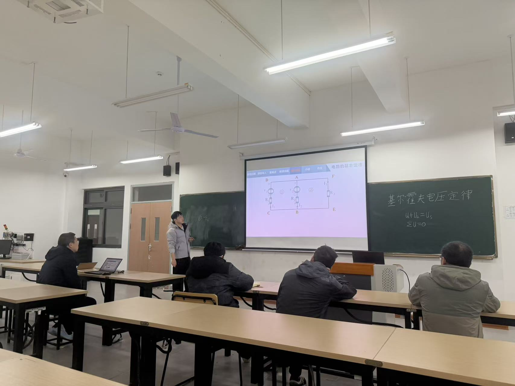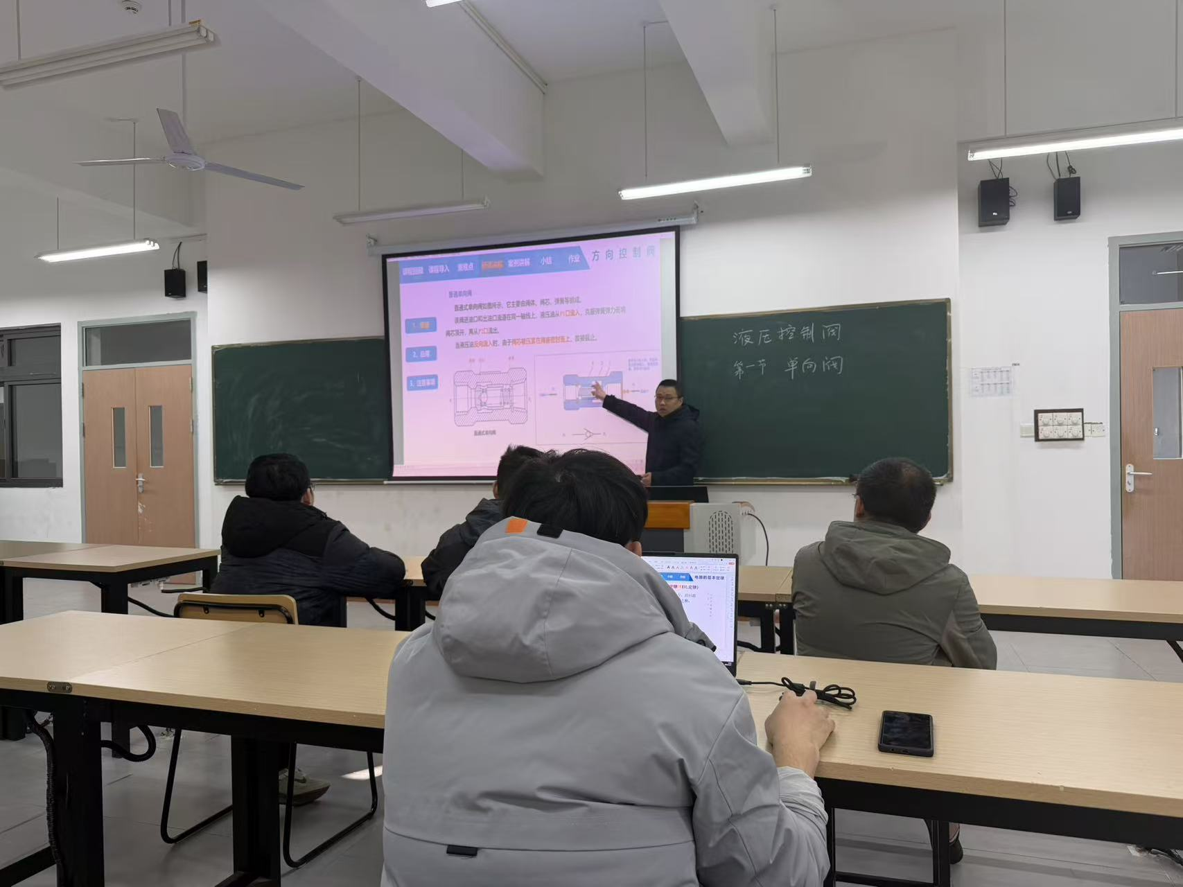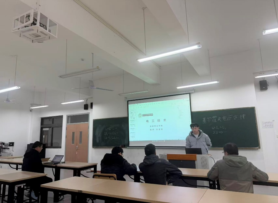 活动中,新进教师刘亮、安培伦分别以“液压单向阀”“基尔霍夫电压定律”为授课主题,严格按照学校授课能力考核要求完成模拟授课。刘亮老师围绕液压单向阀的结构、工作原理及应用场景展开系统讲解,通过逻辑梳理与原理演示强化知识传递;安培伦老师聚焦电路基础核心定律,从理论推导到实际应用层层递进,设计互动提问激发学生思考,两位教师均展现了扎实的专业功底与积极备考的饱满状态。