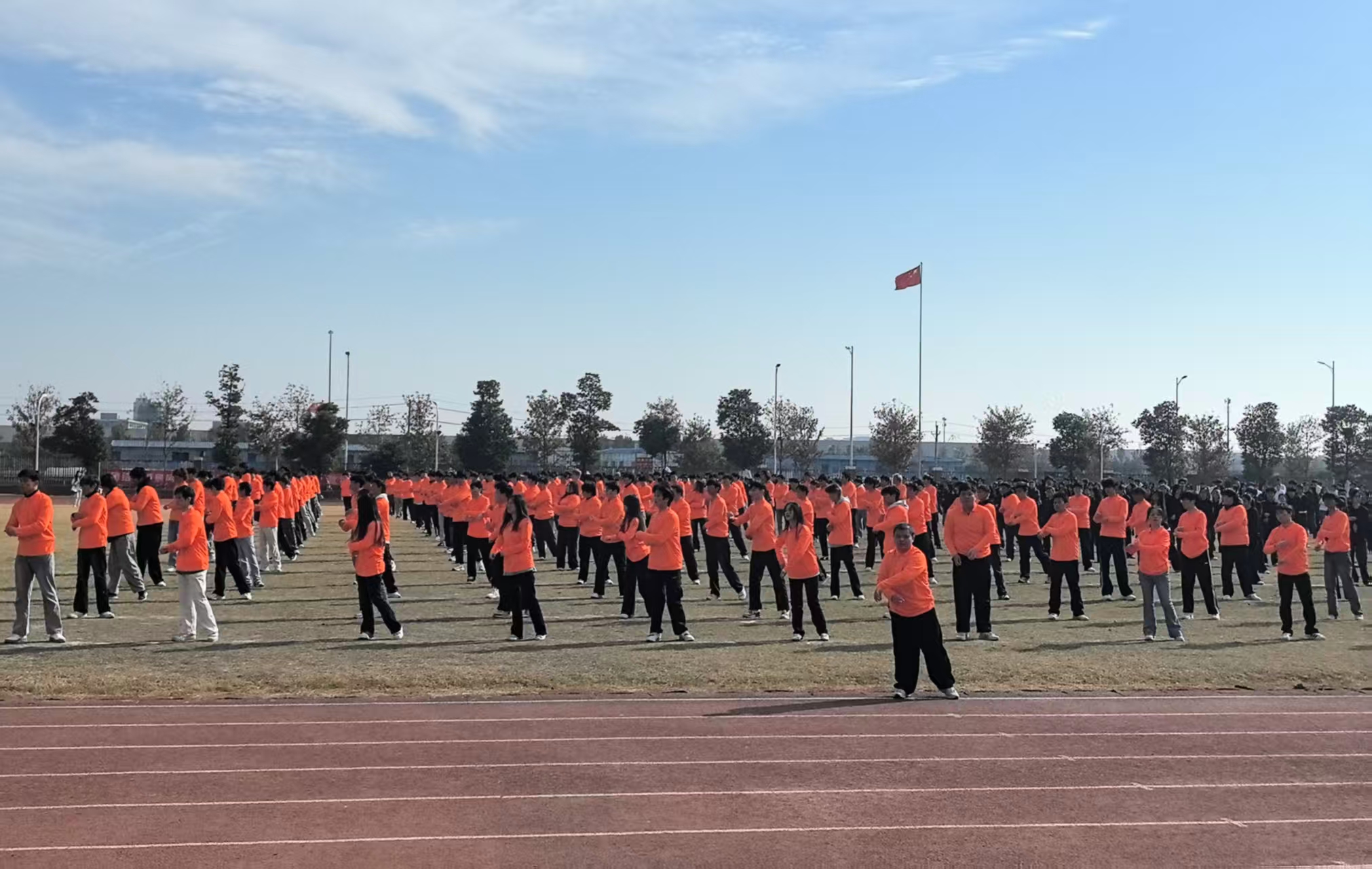 管理200人的队伍,挑战是空前的。从最初的站位点确认,到动作节奏的精准卡点,再到不同方阵之间的衔接配合,每一个环节都是对组织力和执行力的巨大考验。“再来一次!”成了排练场上最高频的词语。同学们的手臂举累了,腿踢酸了,但脸上的笑容和眼中的光芒却从未熄灭。当音乐响起,200人动作整齐划一,如同一片跃动的橙色海洋,那一刻,所有的疲惫都化为了绽放的喜悦与集体的自豪。