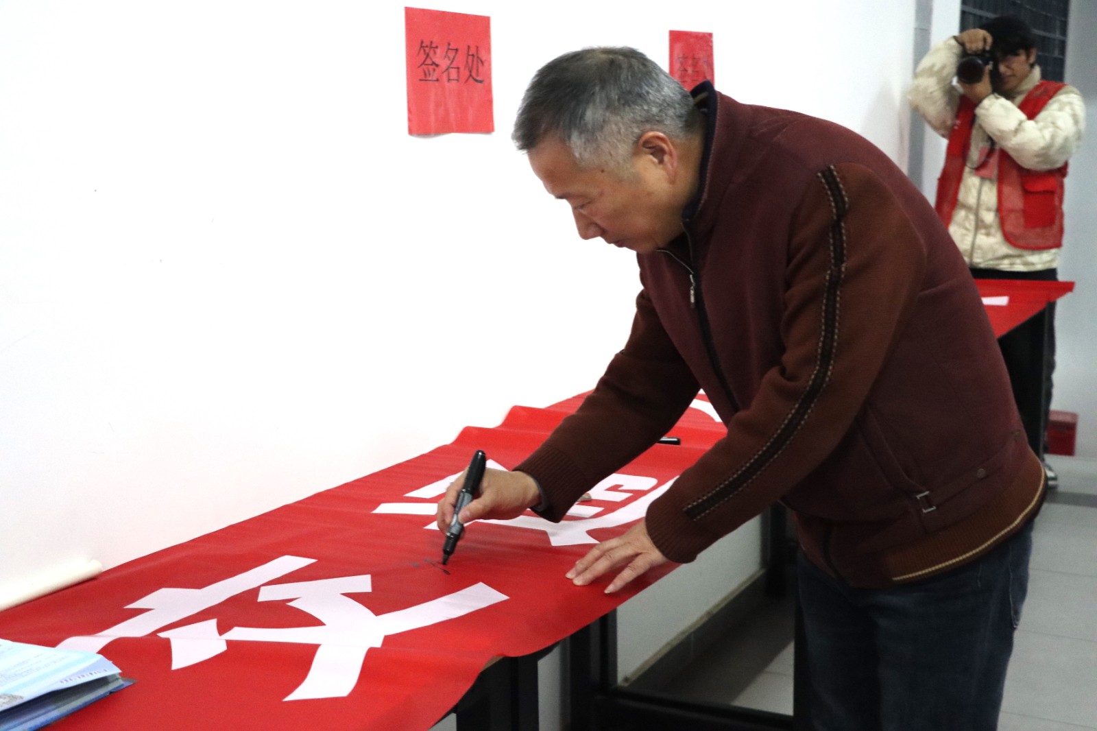 随后,师生们依次在“文明交通,礼行天下”主题横幅上郑重签名,承诺将自觉遵守交通规则,争做文明交通的践行者与传播者。