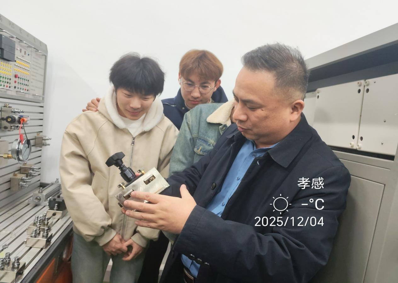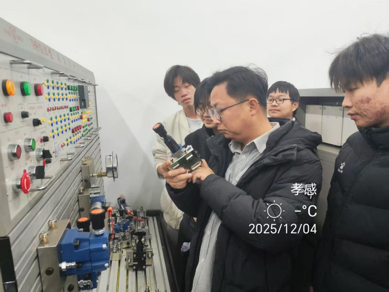 在液压与气压传动技术实训室,院领导观看了学生完成项目任务的过程,对学生严谨的操作流程表示赞赏。方院长指出“实践教学是职业教育的重要环节”,要通过真实的实训场景,让学生掌握核心技术技能。