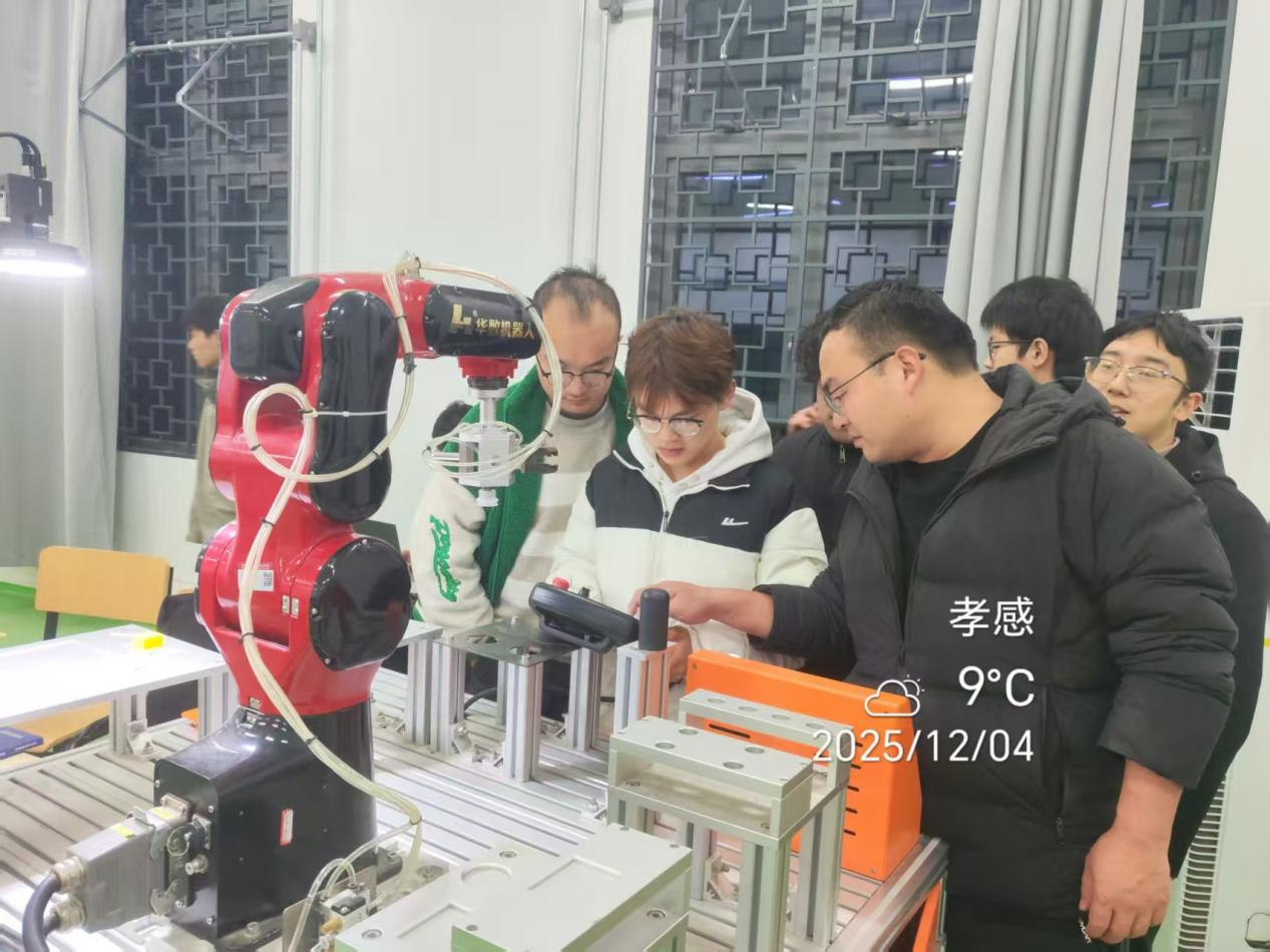 华数机器人实训室内,学生们正在操作工业机器人完成模拟生产任务。指导教师介绍,这些实训项目直接来源于企业真实案例,使学生能够在校期间熟悉未来工作岗位的技术要求。